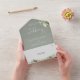 Das Ganze in einer eleganten und grünen Brauteinladung mit grünen Blätter, schicken Herzensskripten und Monogramm-Initialen. Die Einladung enthält eine perforierte RSVP-Karte, die für Sie individuell adressiert oder links als leere Karte für die Handschrift der Adressdaten Ihres Gastes verwendet werden kann. Entwickelt von Thisisnotme©