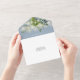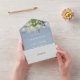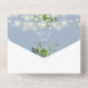 Diese dustig blaue Hochzeitseinladung mit botanischer Vegetation und hübschen Saitenlichtern. Die Einladung enthält eine perforierte RSVP-Karte, die individuell adressiert oder links werden kann, damit Sie die Adressdaten Ihres Gastes handschreiben können. Entwickelt von Thisisnotme©