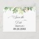 Dieses grüne Sommerziel Save the Date Karte ist ideal für eine einfache Hochzeit. Grün blütige handgezeichnet Blätter, Blattwerk und idyllische geometrische Rahmen, oozierender Stil und Klasse, um Ihre Anwesenheitskarten zu schmücken.