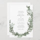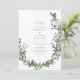 Hochzeitseinladung mit einem wunderschönen Kranz aus Grün und Weinbergen. Passen Sie Ihre Daten an.
