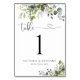 Grüne Hochzeiten Tischnummern. Diese stilvolle und elegante Hochzeitseinladung besticht durch die herrliche, handbemalte Aquarellpflanze Eukalyptus-Blumengrün. Finden Sie passende Artikel in der Eukalyptus Floral Greenery Collection.