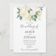 Moderne Hochzeitseinladung mit weißen und neutralen Aquarellfarben-Blume mit (Imitaten) goldgelben Akzenten. Ideal für Frühjahr- und Gartenhochzeiten.