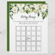Dieses weiße, blumengeschmückte Baby-Bingo-Duschspiel eignet sich perfekt für eine rustikale Babydusche. Das Design besticht durch elegante, weiße, Aquarellbäume mit grünem Blattwerk.