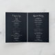 Das weiße, blumengeschmückte Hochzeitsprogramm in königsblauem Blau ist perfekt für eine rustikale Hochzeit. Das Design zeichnet sich durch elegante Aquarellbäume mit grünem Blattwerk in dunkelblauem Hintergrund aus. Geben Sie ein Angebot oder eine kurze Nachricht, die Reihenfolge des Dienstes, Hochzeitsfeier und Dankeschön Nachricht.