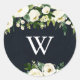Greenery White Floral Royal Blue Monogram Wedding Runder Aufkleber