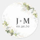 Grüne weiße Rosen Hochzeit klassische Rundsticker. Dieses stilvolle und elegante Hotel empfängt Sie mit herrlich handbemalten Wasserfarben, grünen Weißen Rosen. Finden Sie passende Artikel in der Watercolor Greenery White Roses Wedding Collection.