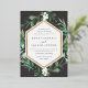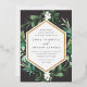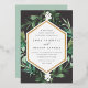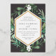 Wählen Sie aus diesen farbenfrohen botanischen Einladungen für Ihre Winterhochzeiten, Herbst- oder Herbsthochzeiten oder Abend Hochzeiten im Sommer. Chic Design kombiniert natürliche und geometrische Elemente für einen frischen und modernen Look. Ihre Hochzeitsdetails erscheinen in einem weißen geometrischen Element mit goldgelbem Rand, umgeben von grünem Blattwerk, üppigen Blätter und kleinen, weißen Blume, in einem schwarzen Schriftzeichen. Ein tieferdiger Hintergrund verleiht Reichtum und Drama. Matching Artikel in unserer Greenhouse Kollektion verfügbar.