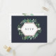 Die botanische UAWG-Postkarte in Grün und Weiß mit einer Auswahl an Mahlzeiten oder Vorspeisen mit eleganten Imitaten mit geometrischen Akzenten aus Kupferfolie auf einem marineblauen Hintergrund. "UAWG" erscheint in der Mitte, mit den vollständigen Antwortdetails auf der Rückseite, zusammen mit Ihrer Rücksendeadresse. Entworfen, um unsere Greenhouse Hochzeitskollektion zu ergänzen.