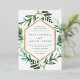 Wählen Sie aus diesen farbenfrohen botanischen Einladungen für Ihre Winterhochzeiten, Herbst- oder Herbsthochzeiten oder Abend Hochzeiten im Sommer. Chic Design kombiniert natürliche und geometrische Elemente für einen frischen und modernen Look. Ihre Hochzeitsdetails erscheinen in weißer Schrift, gerahmt von einem goldenen Rahmen und umgeben von grünem Blattwerk, üppigen Blätter und kleinen weißen Blume auf einem knusprigen, weißen Hintergrund. Matching Artikel in unserer Greenhouse Kollektion verfügbar.