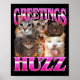 Greetings Huzz Funny Cat Meme Bootleg Graphic Men Poster