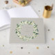Ein gemaltes WinterGästebuch mit handgemalten Snowberries und Eukalyptus, das in einem wunderschönen botanischen Kranz angeordnet ist. Auf der Rückseite befindet sich ein Foto des glücklichen Paares. Der gesamte Text ist vollständig editierbar, sodass Sie die Nachricht/den Stil/die Farbe/die Größe leicht ändern können. Andere Designs, Farben und Koordinaten sind in meinem Shop erhältlich.