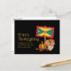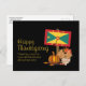 Stilvolle, patriotische GRENADIAN ERNTEDANK Holiday Postcard, die die Karte Kontur und Fahne von GRENADA & CARRIACOU auf einem Banner-Pol mit Kürbis und Herbst-Herbstlaub auf schwarzem Hintergrund zeigt. Auf der Vorderseite steht der Wortlaut GLÜCKLICH DANKSGIVING - DANKE HERR FÜR IHRE FAITHFULNESS UND FÜR ALLES, WAS SIE GETAN HABEN. Auf der Rückseite befindet sich eine CUSTOMIZABLE-Nachricht, die Sie nach eigener Wahl ändern können. Auch kommt mit weißem Hintergrund.