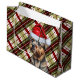 Hundeliebhaber werden diese niedliche Weihnachtsgeschenktüte mit einem niedlichen Grenz-Terrier auf festlichem rot-grünem Feiertag mit kariertem gemustertem Hintergrund genießen.
