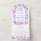 Grenze der Blätter und Beeren Lavendelhochzeit All In One Einladung