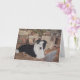 Diese bemerkenswerte Grenzkollie heißt Badger, er war die sanfteste Collie, die man sich je vorstellen konnte. Dieses Bild ist von meinem originalen pastellfarbenen Portrait reproduziert, das ich von ihm gemalt habe. Ich benutzte ein Foto, aus dem ich arbeiten konnte. Der Titel des Gemäldes ist "Ein Auge auf die Mädchen Behaltend", weil diese spezielle Grenzkollie nichts anhaben würde, er ließ einfach das Hühnerpeck um sich herum. Ich denke, diese originale Grenz Collie und Küken Art Grußkarte ist ein großartiges Geschenk an jemanden, der Hunde und Tiere Lieben oder einfach nur die Originalkunst jeder Art genießt. Es hat eine sehr kurze und offene Nachricht in "Beste Wünsche", die für alle attraktiv sein sollte.