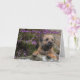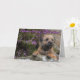Ein Grenzterrierwelpe saß auf einem Felsen mit hübscher lila Heide hinter ihm, große Geburtstagskarte für jeden möglichen Hundeliebhaber besonders die-, die Liebe Grenzterrier, aber passendes für alle