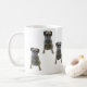 Tasse mit dem Grenzterrier, der sie haftet, ist- Zunge heraus.