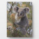 In einem blühenden australischen Grevillea Bush ist ein kuscheliger Koala-Bär abgebildet.