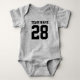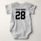 Niedlicher Bodysuit für Kleinkinder. Mama und Liebe Sport. Es ist nur natürlich, dass das Baby auch sollte. Niedlicher Babybodyanzug in silbergrau und schwarz. Sie können den Namen und die Spielernummer auf der Vorder- und Rückseite des Trikots anpassen. Nicht nur für Fußballfans. Jeder Sportfans wird dieses Design schätzen. Baseball, Basketball, Fußball, Eishockey und vieles mehr.