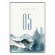 Grey Blush Green Blue Mountains Pine Wedding Tischnummer