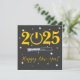 Grey square greeting card Happy new year written in yellow in English with many stars - editable text and background
