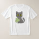 Whimsical grey cat clutching a four-leaf clover with bold yellow eyes and crisp outlines. A cheerful luck motif for kidswear, gift tees, and spring collections.