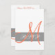 Nutzen Sie diese stilvolle RSVP-Karte, um mit der Hochzeitseinladung im Laden in Einklang zu kommen. Sie können den Text ändern, um Ihr Sprichwort und die Wahl der Mahlzeiten hinzuzufügen. Graue, weiße und korallenweiße Hochzeitskarte mit Ihrer Monogram und Ihren Namen in einem einfachen, aber eleganten Design. ELKE CLARKE © für Monogram Gallery. Auf weißem Grundpapier dargestellt.