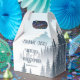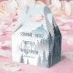 Ein mysteriöser, grauer Wald mit einem romantischen, weißen Nebel um die Kiefern und Berge im Hintergrund ist eine große Gastgeschenk Hochzeit für Wildnis. Die Typografie zeigt alle Kappen mit einer schönen Signatur geblüht auf den Buchstaben dieses hübschen Empfang Gunst Box.