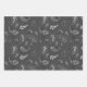 Dieses Set von Packpapier-Bogen hat ein paisley Muster im Stil von Bandanas. Die Schwarz-Weiß-Grafik ist Set vor einem kohlegrauen Hintergrund, einem blauen Hintergrund und einem roten Hintergrund.