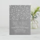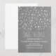 Die süße und skurrile Sternennacht Ankündigung Datum freihalten grau mit einem Kraftpapier-Hintergrund mit Kaskaden niedlicher und winziger Sterne. Dieses lustige Stern Save the Date laden ein zum Ankündigen einer schönen Sommerhochzeit im Abend. Dieses Design ist auch perfekt für eine Hochzeit zum Thema Astronomie, vielleicht in einem Planetarium. Einfach anpassen, einfach Ihren eigenen Text in die vorhandenen Textfelder einfügen. Klicken Sie auf "Anpassen", um weitere Personalisierungsoptionen zu erhalten.