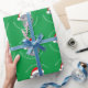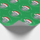 Grey Tabby Christmas Cat auf grünem Umschlagpapier Geschenkpapier
