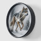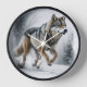 Ein gut aussehender Grauwolf, auch bekannt als Holzwolf, patrouilliert seine Wintergrenze auf der Suche nach Beute.