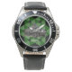 Herrenuhr aus Edelstahl mit schwarzem Lederarmband