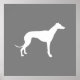 Weiße Form eines Windhundehundes in grauem Schatten.