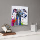 Ein künstlerisches Hundedesign mit einem farbenfrohen Spritzer.