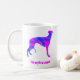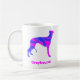 Greyhound / Lurcher Silhouette Hund verrückt heiß rosa und blau abstrakte Muster. Holen Sie sich Ihre Pfoten auf diese personalisierte weiße Tasse, um Ihre Liebe für diese vierbeinigen Pelzbabys zu zeigen. Es ist auch ein großartiges Geschenk für alle Hunde Mütter und Väter dieses Vaters oder Muttertags.