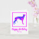 Greyhound Hund Silhouette in verrücktem, heiß rosa und blau hell modernen abstrakten Muster. Die lustige Geburtstagsnachricht kann auf alles, was Sie gewollt haben, geändert werden. Personalisieren Sie die Karte mit dem Namen auf der Vorderseite.