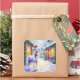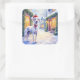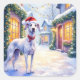 Greyhound Snowy Village Santa Hat Christmas Art Quadratischer Aufkleber