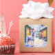Share warm holiday wishes with this elegant Christmas card featuring a Greyhound wearing a Santa hat in a charming snow-covered village. Twinkling lights, frosted windows, and gentle snowfall create a peaceful watercolor winter setting perfect for dog lovers. The blank interior allows for personalized messages, making it ideal for gifting, seasonal correspondence, and breed-themed collections.