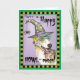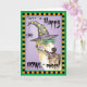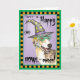 Senden Sie Halloween-Grüße mit dieser Karte eines niedlichen Greyhound mit einer grünen Maske und einer Hexenmütze, die mit einer albernen Spinne dekoriert ist. Ideal für Kinder jeden Alters, die Windhunde und Halloween Liebe haben. Viel Glück!