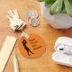 Eine runde orangefarbene Schlüsselkette mit einer Grafik eines Basketballspielers, der sich darauf vorbereitet, einen Ball im griechischen Kunststil mit den Worten "Zug" zu werfen. Wirf. Gewinnen. Wiederholen." Definitiv die universelle Formel für jeden Sportler.
