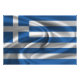 Foto mit der Flagge Griechenlands im gewölbten Stil. Dieses Design zeichnet sich durch die griechischen Fahnen Farben und Design mit einem schönen Wellenstoff texturierten Effekt aus. Dieses Flaggendesign ist eine großartige Möglichkeit, Ihnen zu zeigen, dass Sie stolz sind, aus Griechenland zu sein.
