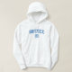 " Griechenland" Art und -Staatsflagge in einer sauberen Art. Das Wort GRIECHENLAND ist Set in einem Collegeartschriftbild in einem Bogen über einem Bild der griechischen Flagge. Die Flagge von Griechenland (populär gekennzeichnet als der "Himmel blau-weiß" oder das "blau-weiße"), offiziell erkannt durch Griechenland als eins seiner Staatssymbole, basiert auf neun gleichen horizontalen Streifen blauer Abwechslung mit Weiß. Es gibt einen blauen Bezirk im Ecklager des oberen HebemaschineSide ein weißes Kreuz; das Kreuz symbolisiert östliches orthodoxes Christentum, die hergestellte Religion der griechischen Leute von Griechenland und Zypern. Entsprechend einer populären Tradition symbolisieren die neun Streifen die neun Musen, die Göttinnen der Kunst und der Zivilisation
