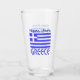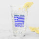 Personalisiertes Trinkglas hat die griechische Flagge mit dem Wort GRIECHENLAND unten, in blau. Die Flagge zeigt blaue und weiße Streifen mit einem blau-weißen Kreuz in der oberen rechten Ecke. Fügen Sie darüber einen Namen hinzu, in blauen Buchstaben, für einen personalisierten oder ein Geschenk erstellen. Umsichtiges Hauswärmespeicher für die Zuhause Bar. Ideal, um den Oxi Day zu feiern.
