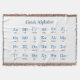Große und untere Großbuchstaben griechische Buchstaben mit Namen. Vector-Objekt mit benutzerdefinierten Farben für Titel, Buchstaben und Buchstaben. Benutzerdefinierte Hintergrundfarbe.