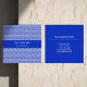 Elegante, stilvolle und raffinierte Visitenkarten mit griechischen Quadraten verschmelzen das Hauptmuster in Blau und Weiß. Modernes und trendiges Design, perfekt für den mediterranen Liebhaber.