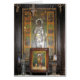 Ein Flexi-Foto-Magnet mit einem wunderschönen Foto einer religiösen silbernen Ikone und Gemälde eines Heiligen, aufgenommen in der griechisch-orthodoxen Kirche der Metamorphose, Ermopouli, Griechenland.