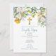 Ein wunderschönes Taufdesign mit Blume in Gelb-Weiß-Aquarellfarben, Goldkreuz und einem griechisch-orthodoxen Symbol der Jungfrau Mary auf der Rückseite der Karte. Ein religiöses Design, ideal für die Taufe eines kleinen Jungen. In der Kollektion dieses Designs kann man die passende Schreibwaren und Dekoration bewundern.
