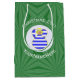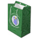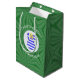 Mittlere Geschenktasche mit einem blonden Engel, die die Flagge Griechenlands trägt, für ein Weihnachtsgeschenk Dekoration oder Dekoration. Der griechische Flaggenengel befindet sich in einem weißen runden Fraktal mit quadratischen Quadraten. Der Hintergrund ist ein grünes Fraktal von quadratischen Quadraten. Fügen Sie Ihren eigenen Text oder personalisieren Sie mit einem Namen und das Jahr. Teilen Sie Ihr Erbe in dieser Feriensaison mit.