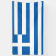 Dieses Design zeigt die nationale Flagge von Griechenland (Ελλάδα), offiziell die Hellenische Republik, ein Land in Südosteuropa. Die Hauptstadt und größte Stadt Griechenlands ist Athen, während Thessaloniki die zweitgrößte Stadt ist. Griechenland grenzt im Nordwesten an Albanien, im Norden an Nordmakedonien und Bulgarien und im Nordosten an die Türkei. Das Land umfasst viele Inseln, von denen 227 bewohnt sind. Griechenland besteht aus neun traditionellen geografischen Regionen: Mazedonien, Zentralgriechenland, Peloponnes, Thessalien, Epirus, Ägäischen Inseln (einschließlich Dodekaner und Kykladen), Thrakien, Kreta und die Ionischen Inseln.